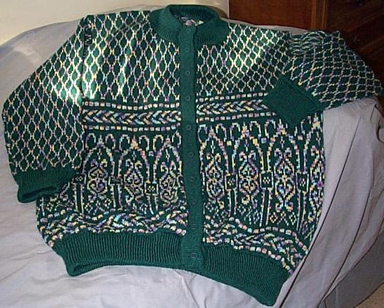 isn't that snazzy..... It was knit on a Brother 930 electronic in double jacquard and those of you have Brother