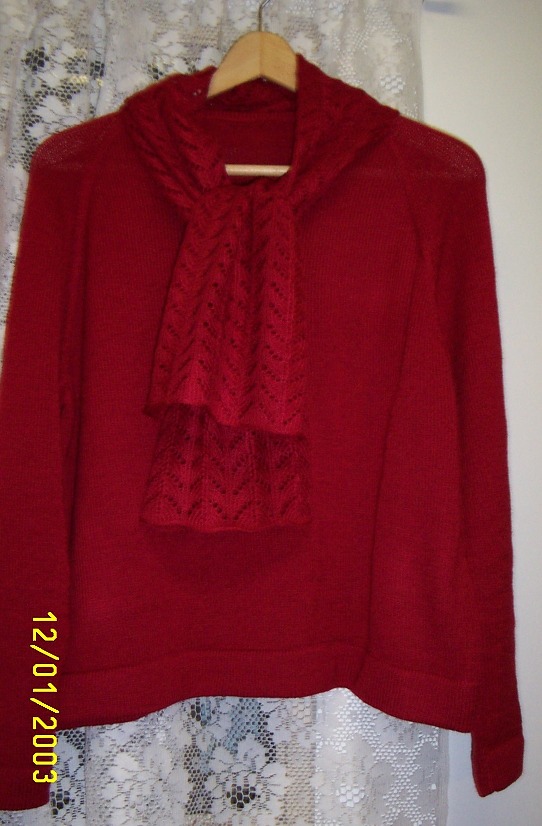 (She still has it and still wears it at Christmas.) It's just a simple raglan sleeve style with plain hems as I