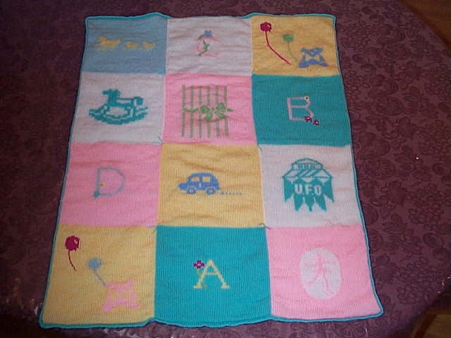 I was using up some of the fine yarn I had hanging around here, so this baby blanket