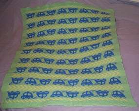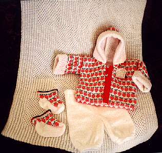 of the design would roll to the inside. Behind the baby set is a baby blanket done on a Passap Duo 80 without deco.