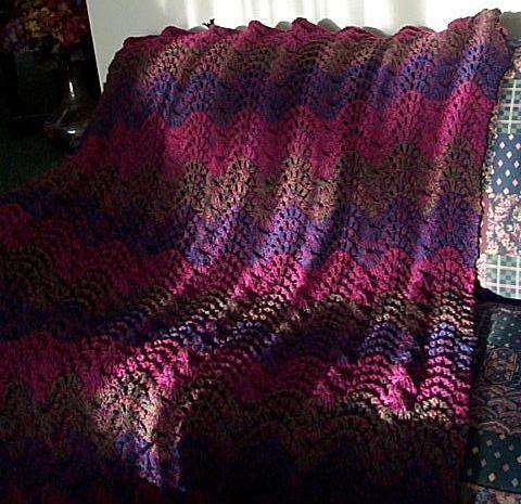 This afghan was handknit with Patons Canadiana Colours and Patons Canadiana. It was