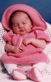 The pattern for the dress and booties can be found in Mary Weaver's "The Passap Duomatic" on pg 230 and