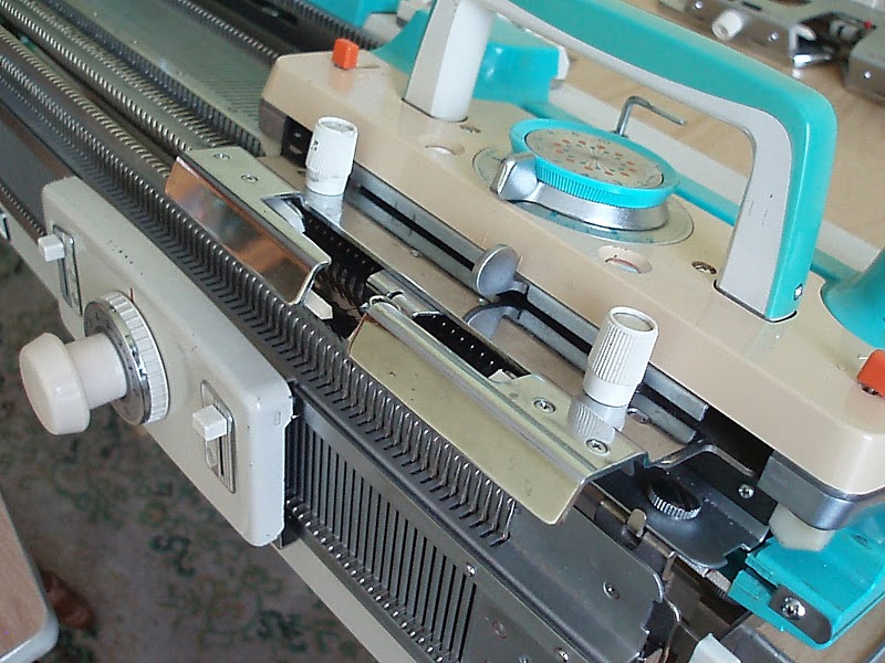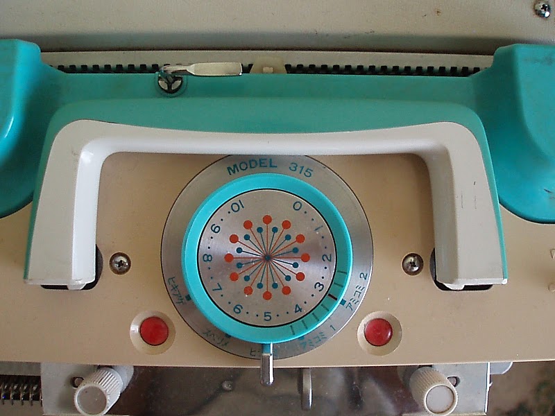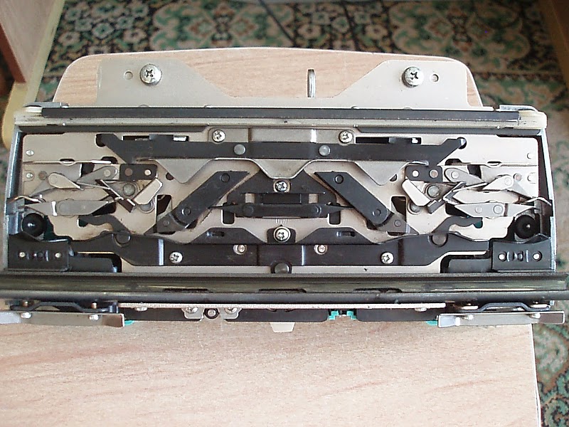 Top down view of SK315 and SR10 - you can see part of the punchcard mechanism at the back left and the row counter (carriages not connected) |
