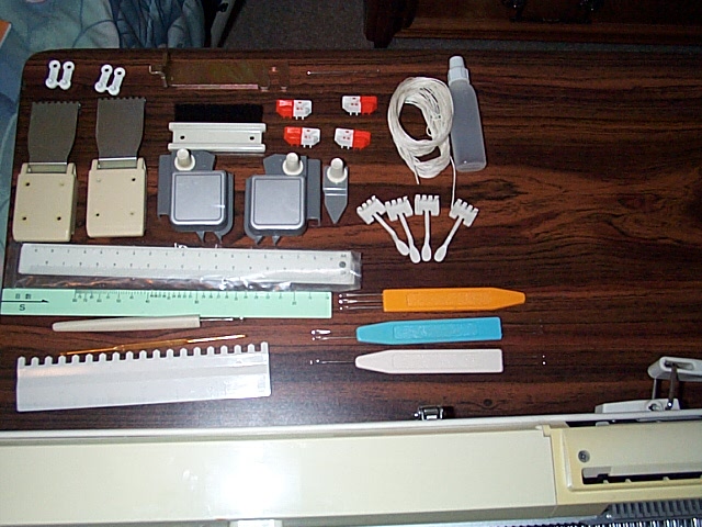 Items that come with the SK360. Tools, rulers, claw weights, etc. |