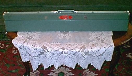 Machine closed up in it's metal case. Not sure if the colour is green or turquoise. |