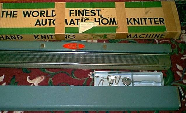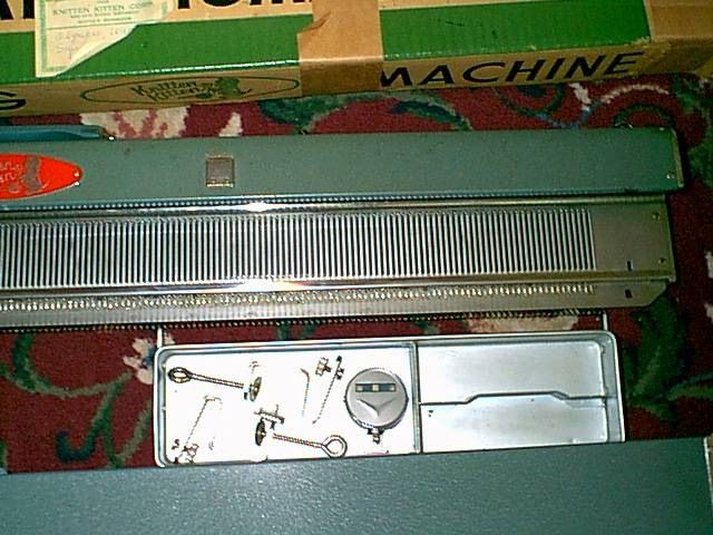 Closer shot - you can see the rowcounter and clamps. With thanks to Judy Poll, I now have confirmation that it is a 4.5 machine. She also says "that totally dismantling one to clean is a royal pain as the gate pegs are not on a long bar, but each one is separate!" |