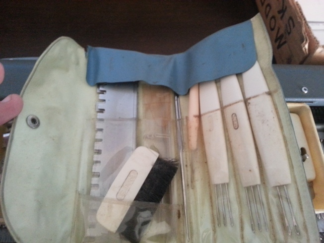 Tool pouch and I'm guessing, the needle selection carriage sitting in a tray.. |