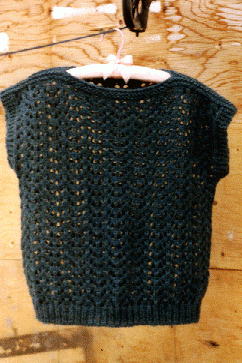 Check ball band for pressing instructions. Join shoulders leaving 28 cm open at centre. Join side seams to start of garter stitch borders.