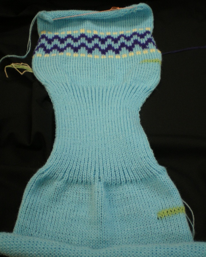 Materials | Originally made in Newry 2/16 or Linwood 2/16 by Spinrite Yarns - approximately 3 ozs (85 grams) of main colour (two strands used throughout) or any other 2/16 used double. Since this yarn is no longer available, 4 ply yarn will give approximately the same result (tension should be matched). Small amounts of contrast are needed for fairisle and small amounts of crochet cotton. |